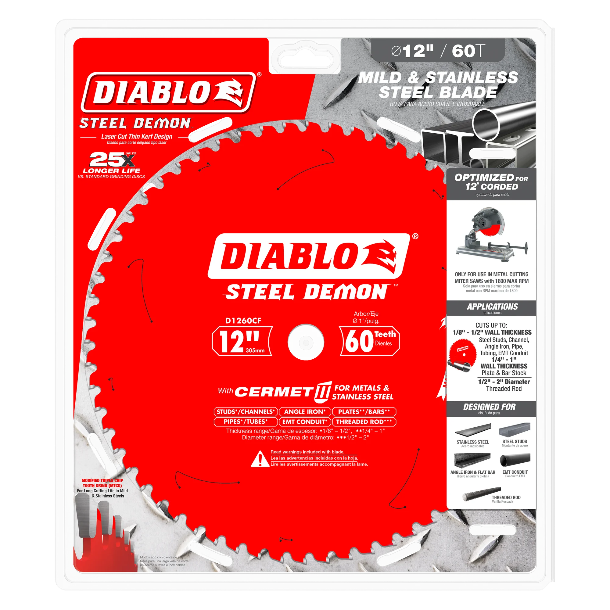 Diablo 12" x 60-Teeth Steel Demon™ Cermet II Saw Blade for Medium Metal